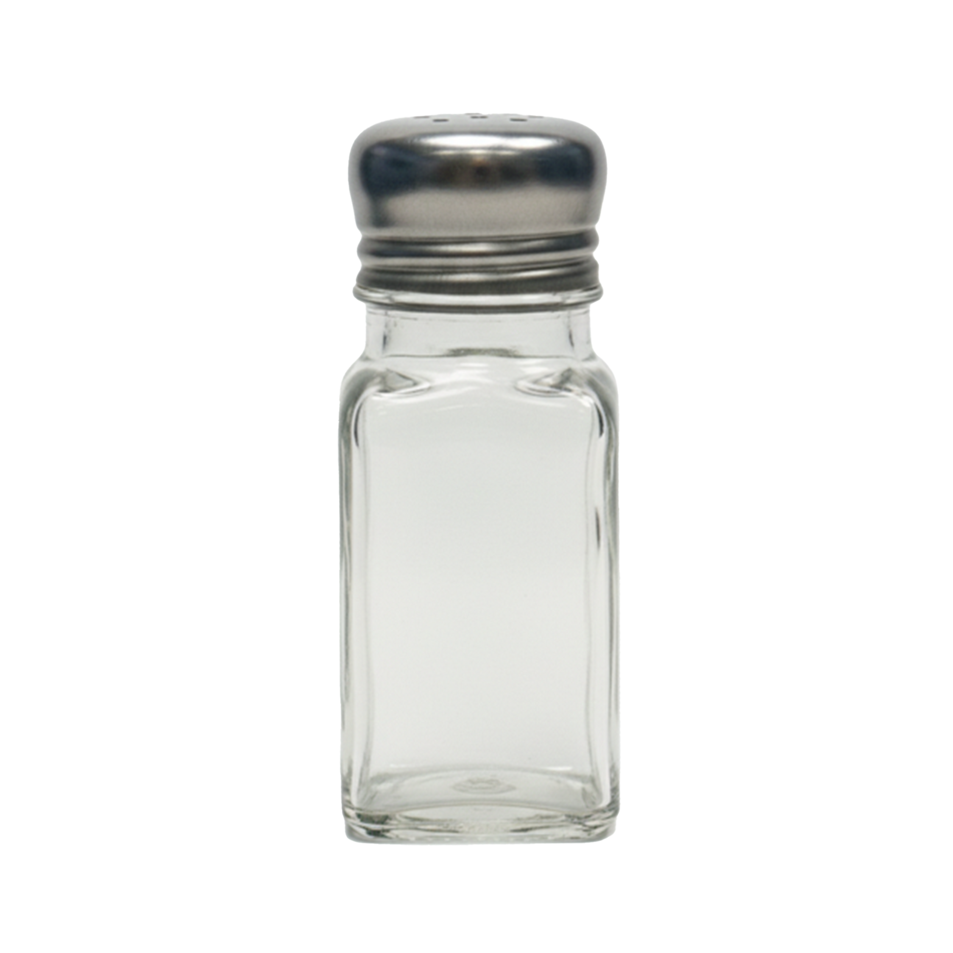 A durable glass shaker with a stainless-steel top for smooth dispensing. Timeless, easy to refill, and essential for every table.